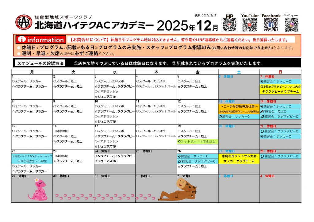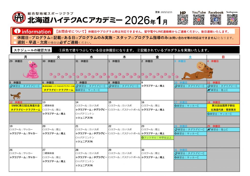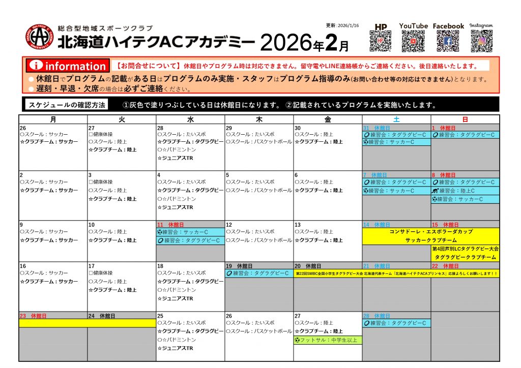 ※施設を借りているため、更新は前月になる予定です。ご了承ください。